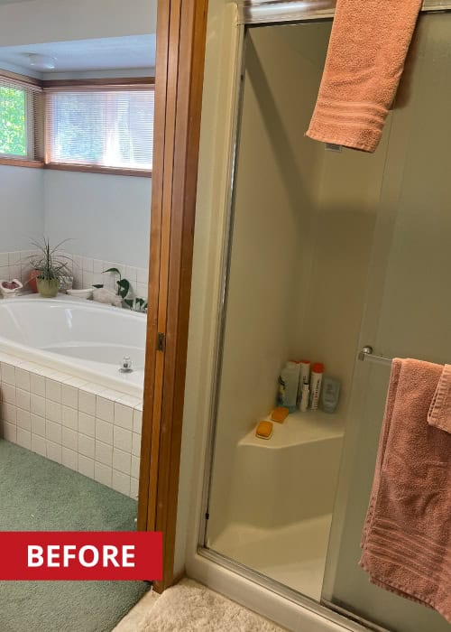 Take a look at the before-and-after photos and details about this bathroom remodel below.